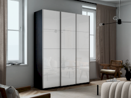 Шкаф-купе 3-х дверный Прайм Белое стекло/Белое стекло/Белое стекло 1800 мм Белый снег