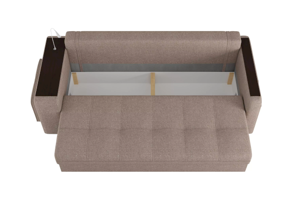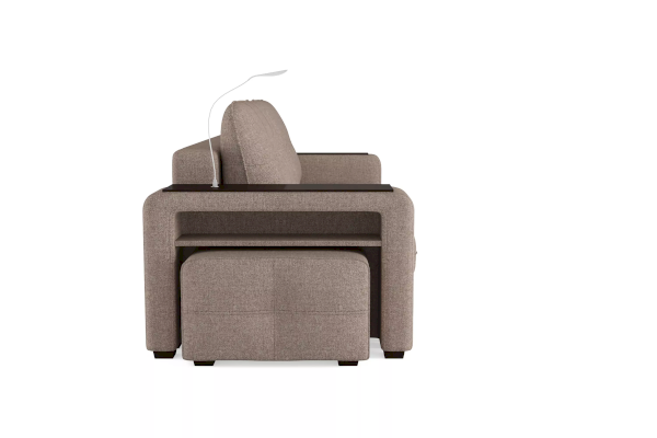 Добавить контрастных деталей в интерьер поможет пуф, интегрированный в подлокотник. Этот вариант для современных людей, которые ценят комфорт и удобство отдыха. Мягкое сиденье с легкостью трансформируется в просторное спальное место, на котором смогут утроиться ваши гости. Стильный и уютный, он станет отличным решением, если вы ищите не только красоту, но и комфорт.