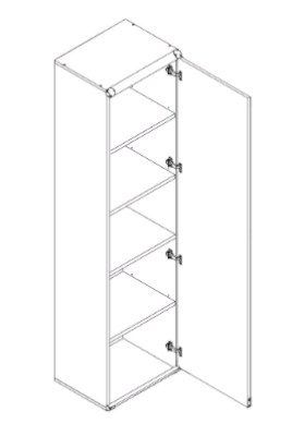 1 распашная глухая дверь, за которой расположено 4 полки