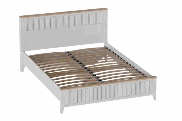 Кроватное основание с деревянными ламелями встроено в конструкцию кровати. Высота опор 104 мм. На опорах размещены войлочные подпятники.