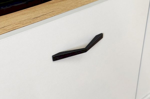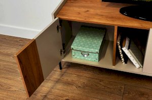 Стильные металлические ручки придают тумбе современный и модный вид. Открытая ниша обеспечивает легкий доступ к вещам, которые вы используете часто, или может служить пространством для размещения медиа-устройств.