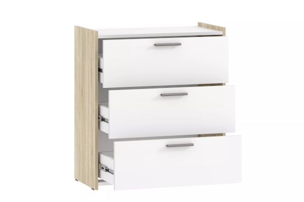 Вместительный комод Симпл, выполненный в скандинавском стиле, гармонично дополнит интерьер вашей спальни. Классический дизайн, спокойные тона и надежность конструкции делают этот предмет мебели по-настоящему универсальным. Комод оснащен тремя выдвижными ящиками, которые выдвигаются плавно и бесшумно благодаря шариковым направляющими.