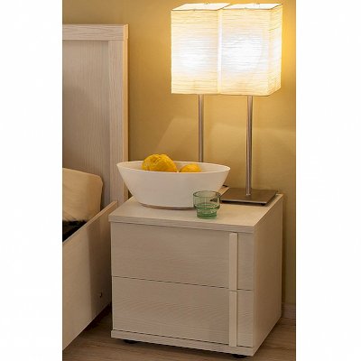 Лаконичный дизайн прикроватной тумбочки в декоре Бодега светлый идеально впишется в белую спальню. Окрашеные деревянные ручки устанавливаются на правой или на левой стороне фасада, по желанию. Два ящика глубиной 17 см оснащены шариковыми направляющими полного выдвижения, что позволит максимально использовать их полезную площадь. С помощью регулируемых опор можно компенсировать небольшие неровности пола в спальне.