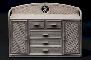Великолепный высокий комод Secret De Maison из французской коллекции ANDREA, выполненный в колониальном стиле, прекрасно впишется в интерьер квартиры или загородного дома. При всей простоте исполнения, комод является довольно вместительным и функциональным предметом обстановки. Пять удобных выдвижных ящиков разного размера и два закрытых отделения с полками позволят хранить огромное количество предметов. Декоративная панель и боковые бортики сверху надежно защитят предметы от падения. Комод выполнен вручную из натурального ротанга с использованием нескольких видов традиционного индонезийского плетения. Натуральный ротанг, покрытый прозрачным матовым лаком, устойчивым к УФ-излучению, прочен, долговечен, способен выдерживать большую нагрузку, и будет радовать вас своим первоначальным видом долгие годы. Модель идеально сочетается с мебелью из коллекции ANDREA, поставляется в собранном виде.