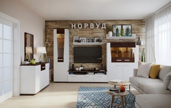 Норвуд 3 Тумба ТВ в белом минималистичном дизайне гармонично дополнит любую современную гостиную. Яркий акцент тумбы - контрастные верх и низ толщиной 22 мм в декоре Орех шоколадный. Три выдвижных ящика на шариковых направляющих плавно и бесшумно открываются за светлые ручки из массива дерева. Утопленная вглубь перегородка открытой ниши создает ощущение легкости и воздушности. На невысокой тумбе можно разместить телевизор диагональю до 65''.