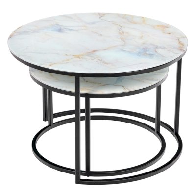 Элегантная пара кофейных столиков Tango станет изящным дополнением любой гостиной или даже спальни. Рисунок на столешнице, выполненной из закалённого стекла с имитацией натурального камня, завораживает и притягивает взгляд. Столики можно расположить парой или расставить по отдельности. Чёрные ножки позволят вписать этот набор в любой интерьер.
