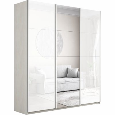 Шкаф-купе 3-х дверный Прайм Белое стекло/Зеркало/Белое стекло 1800х2300х570 мм Сонома